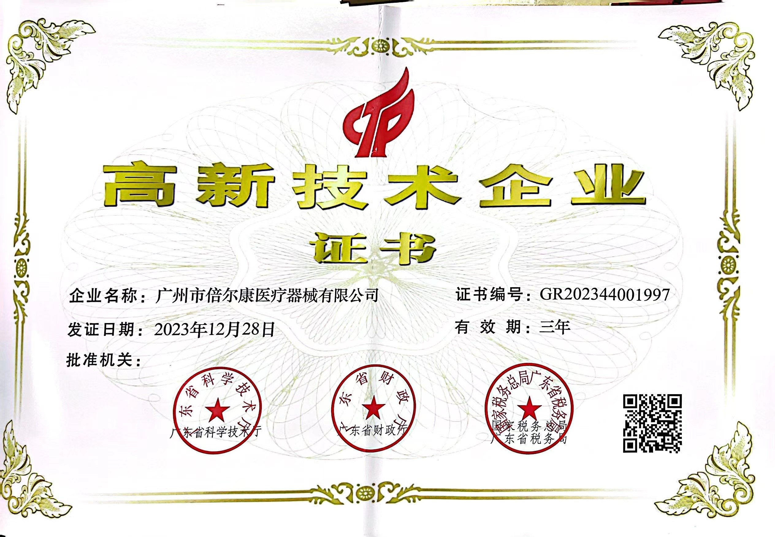 倍爾康高新技術(shù)企業(yè)證書(shū)