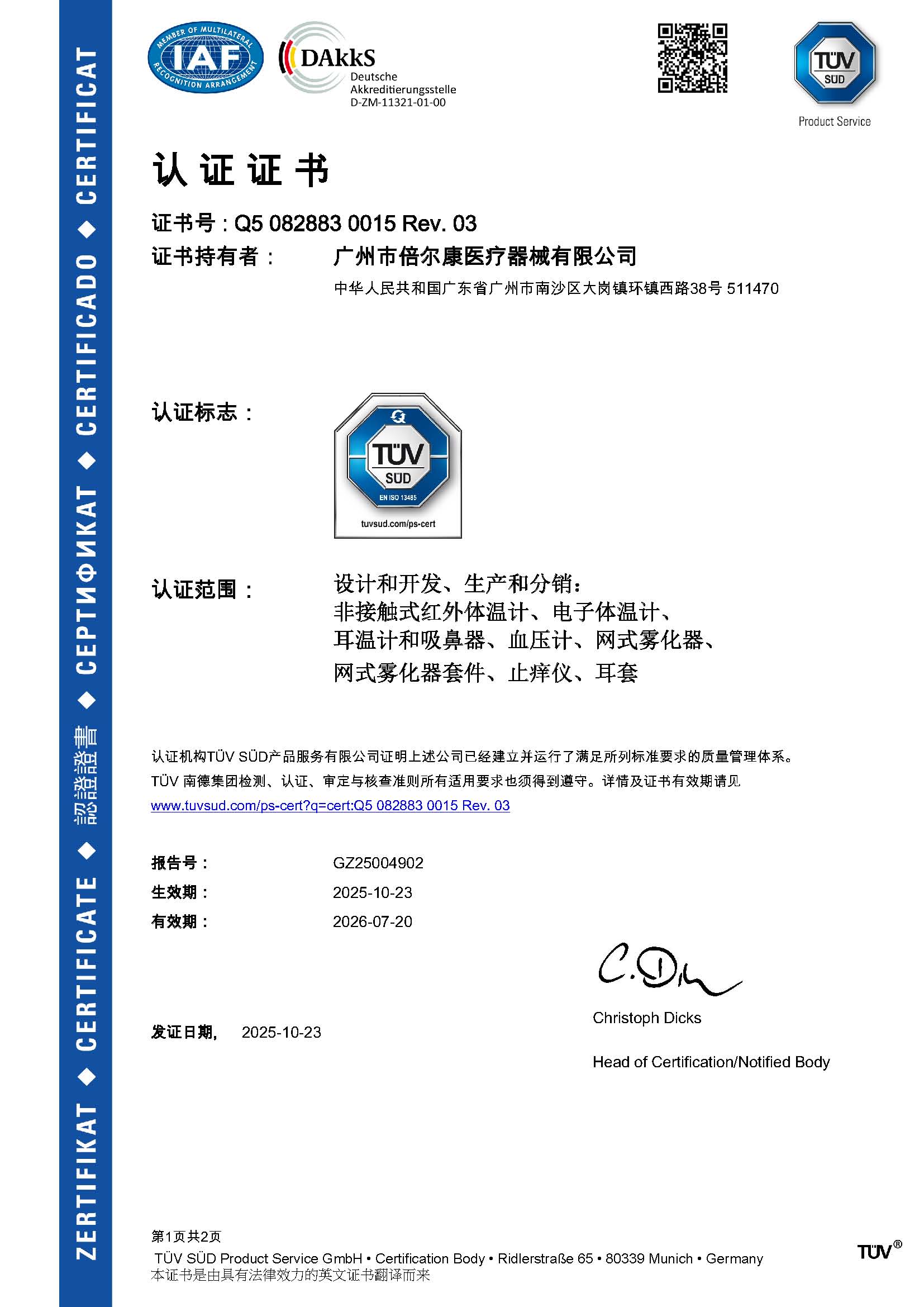 公司秉承“質(zhì)量第一、創(chuàng)新驅(qū)動(dòng)”的發(fā)展理念,擁有智能化生產(chǎn)線和嚴(yán)格的質(zhì)量管理體系,產(chǎn)品通過(guò)ISO 13485、CE、FDA等國(guó)際權(quán)威認(rèn)證,擁有多項(xiàng)國(guó)家技術(shù)專(zhuān)利,并獲評(píng)“廣東省醫(yī)用紅外體溫測(cè)量工程技術(shù)研究中心”。在呼吸治療領(lǐng)域,倍爾康依托成熟的技術(shù)平臺(tái)與醫(yī)療級(jí)品控體系,推出專(zhuān)業(yè)霧化器產(chǎn)品,致力于為醫(yī)院及家庭用戶提供高效、安全、穩(wěn)定的霧化治療解決方案,廣泛適用于兒科、呼吸科及家庭康復(fù)等多個(gè)場(chǎng)景。