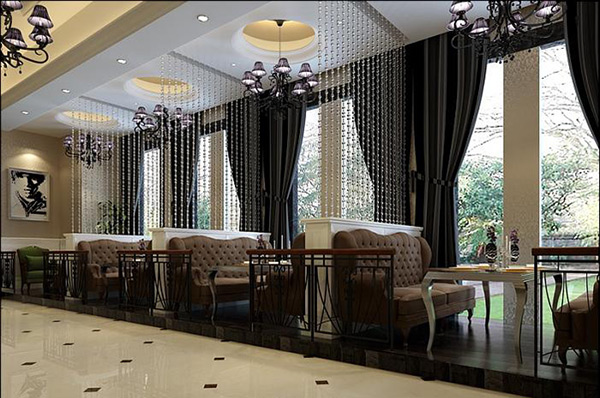 西餐廳的設計要求浪費,最好是緊鄰湖畔,有小溪的地方,由窗外看去,大片湖光風景,小橋流水人家,是多么浪費有氛圍的地方,很多情侶談戀愛都喜歡去的地方。所以要充分利用這一特點,布置觀景雅座也是西餐廳設計的有一個想法。較大的落地窗和觀景雅座區的設立將成為這家西餐廳的特色。觀景雅座區與大廳之間設有隔斷。隔斷為木質,有一定的北歐風情。觀景雅座區將用木質結構與大廳相比,抬高30cm,營造出一定的氛圍。