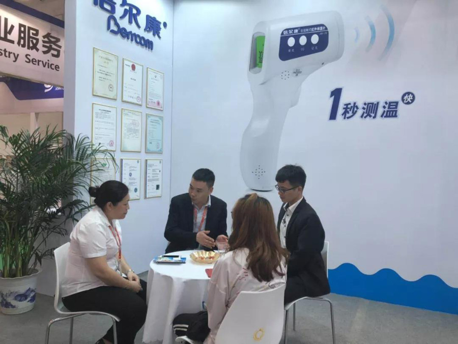 此次健博會上,慕名前來的客戶不斷的體驗著智能體溫計的方便快捷,感受著創(chuàng)新科技帶來的樂趣。