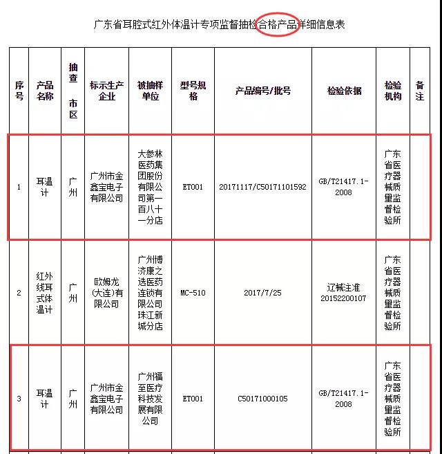 廣東省藥監(jiān)局此次抽查合格產品名單上,倍爾康耳溫計ET001榜上有名!