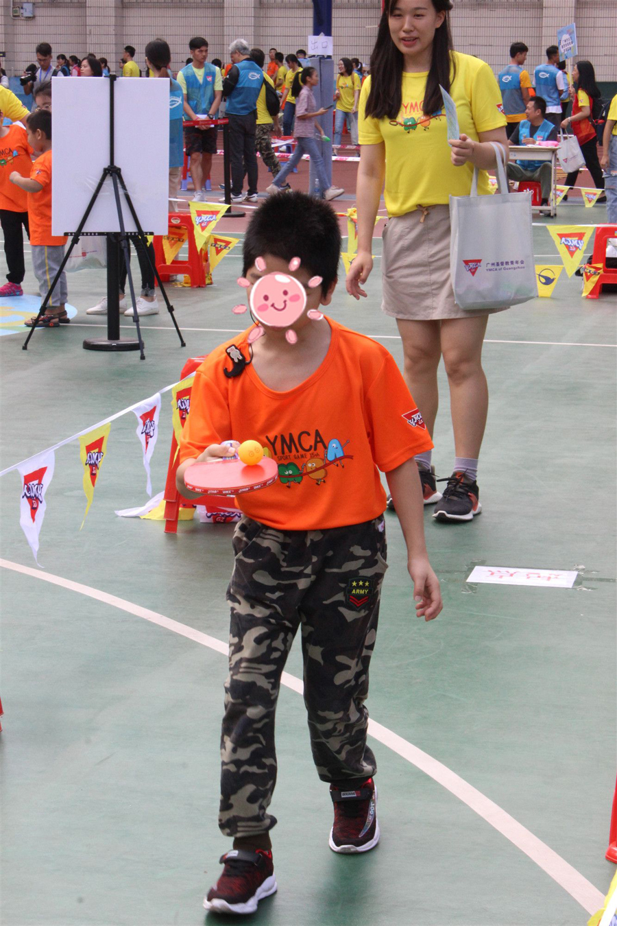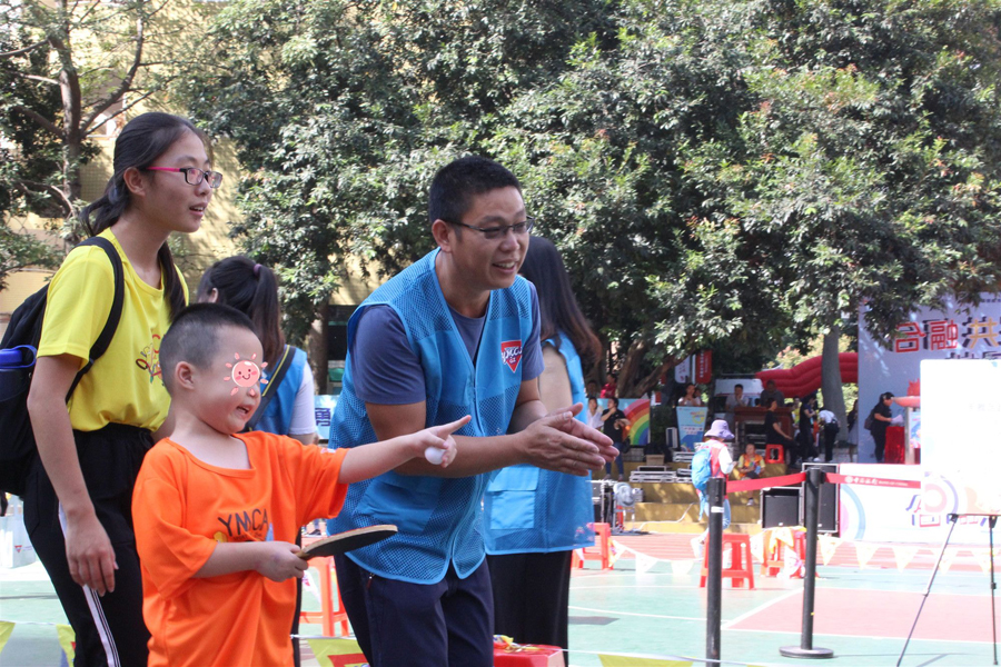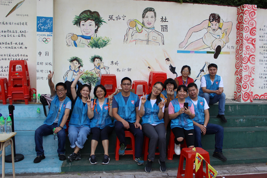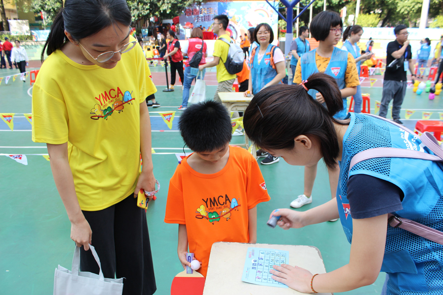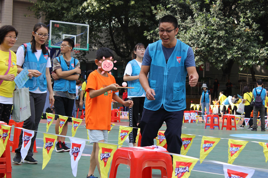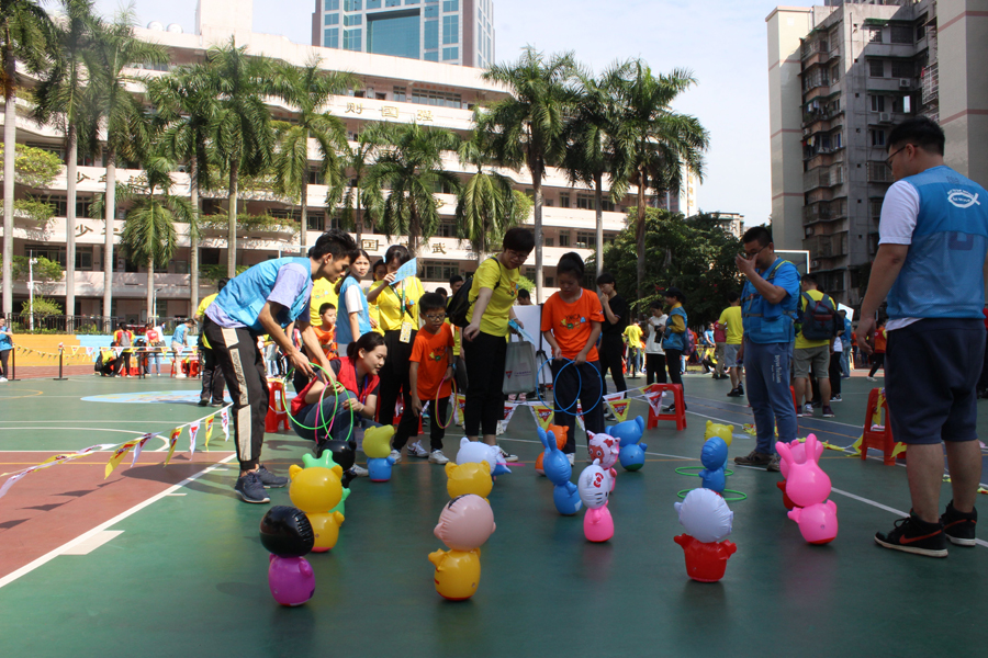 在運動會上,倍爾康的義工們參與負責的游戲項目是——快樂乒乒乓乓。