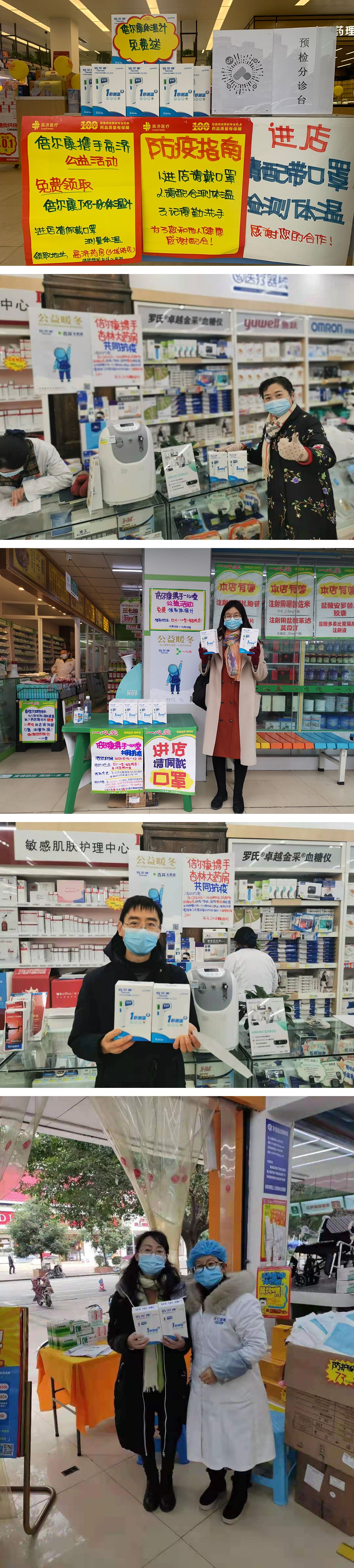本次公益暖冬活動(dòng)是由倍爾康發(fā)起,聯(lián)合四川太極連鎖,四川杏林藥房,高濟(jì)藥房,四川一心堂藥房、成都全億健康以及正和祥大藥房同心抗疫,免費(fèi)贈(zèng)送倍爾康非接觸式紅外體溫計(jì)為成都人民的健康保駕護(hù)航,收獲了市民的認(rèn)可與肯定。