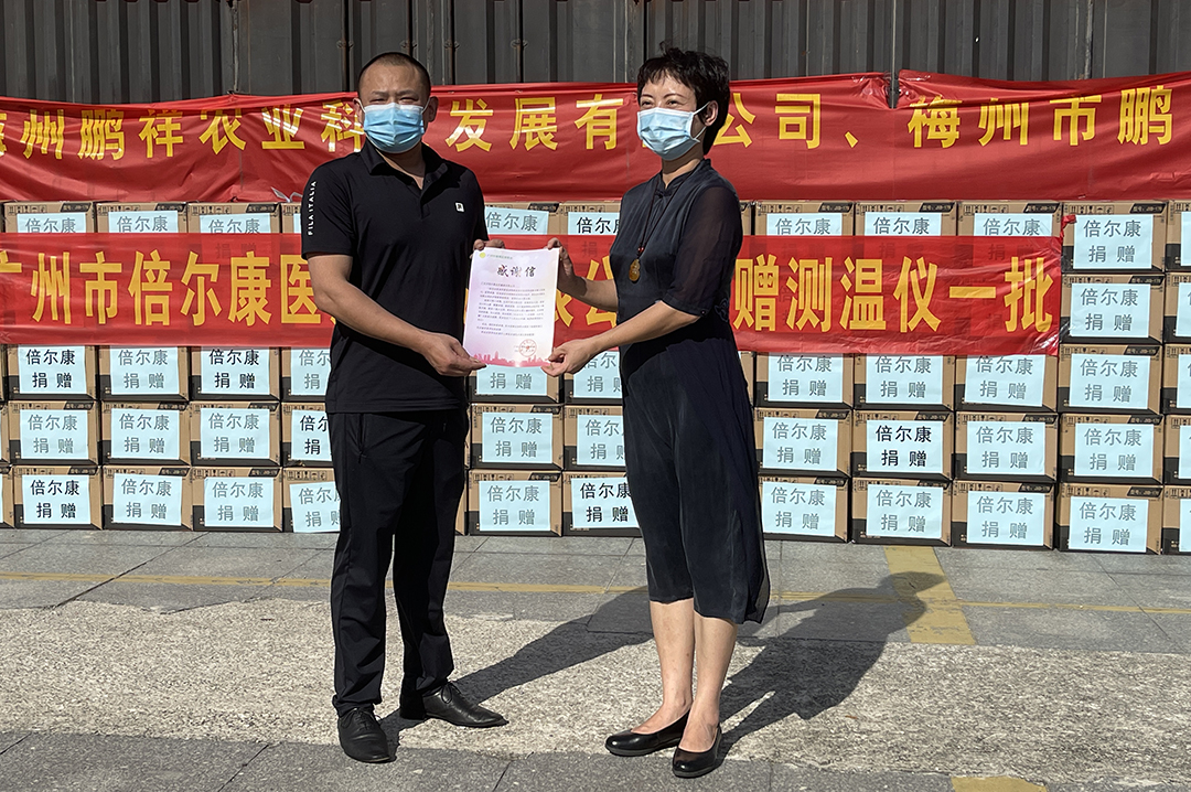 倍爾康向廣州市番禺區(qū)慈善會捐贈紅外體溫計一批