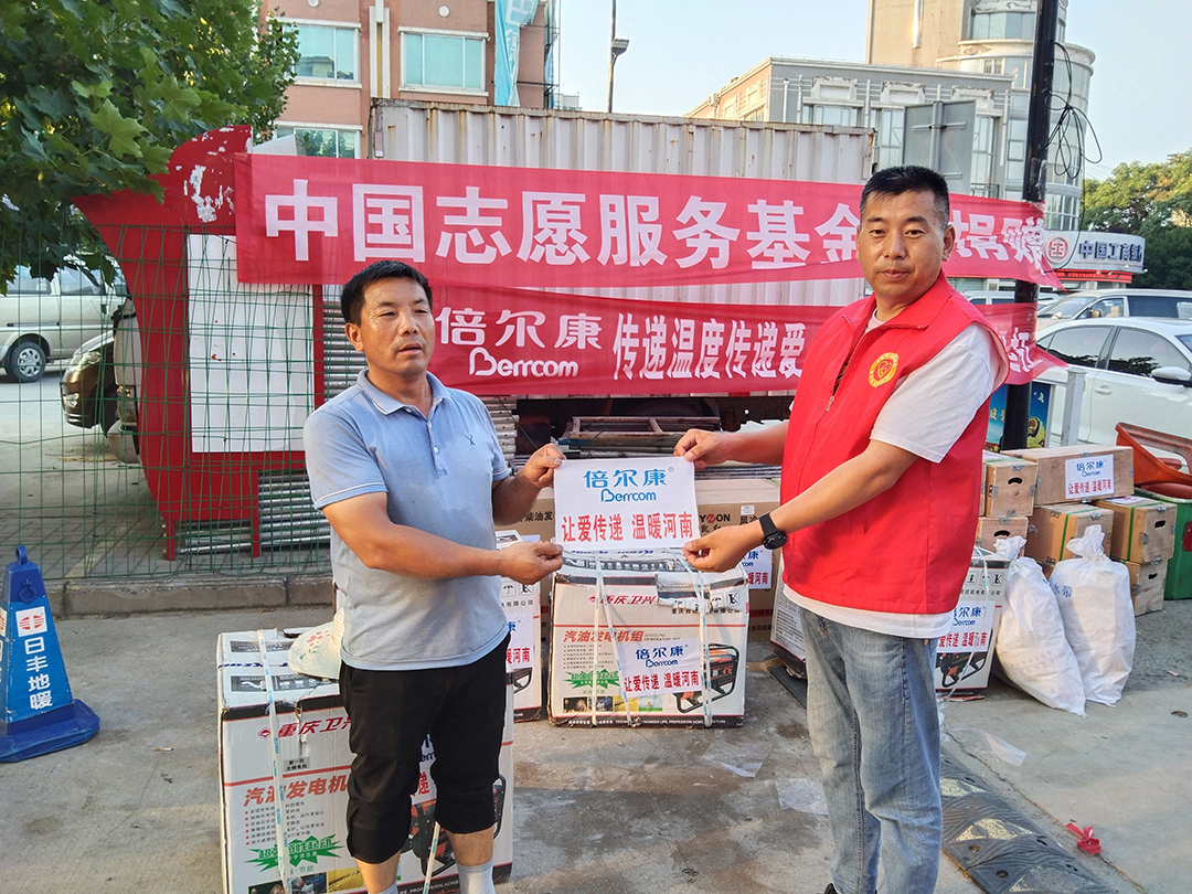 7月29日,倍爾康再次聯(lián)合公益組織——中國志愿服務(wù)基金會,向河南周口、安陽、新鄉(xiāng)三地捐贈了救援物資:9臺玉柴發(fā)電機(jī),20臺污水泵以及20支排水管,共計10萬元。